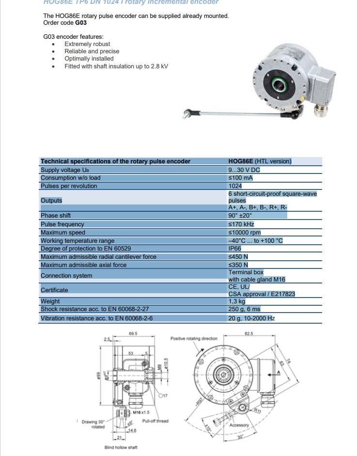 Baumer Hubner - HOG86 TP6 DN 1024 I HOLLOW SHAFT INCREMENTAL ENCODER , TERMINAL BOX RADIAL, 1024 PPR Images |